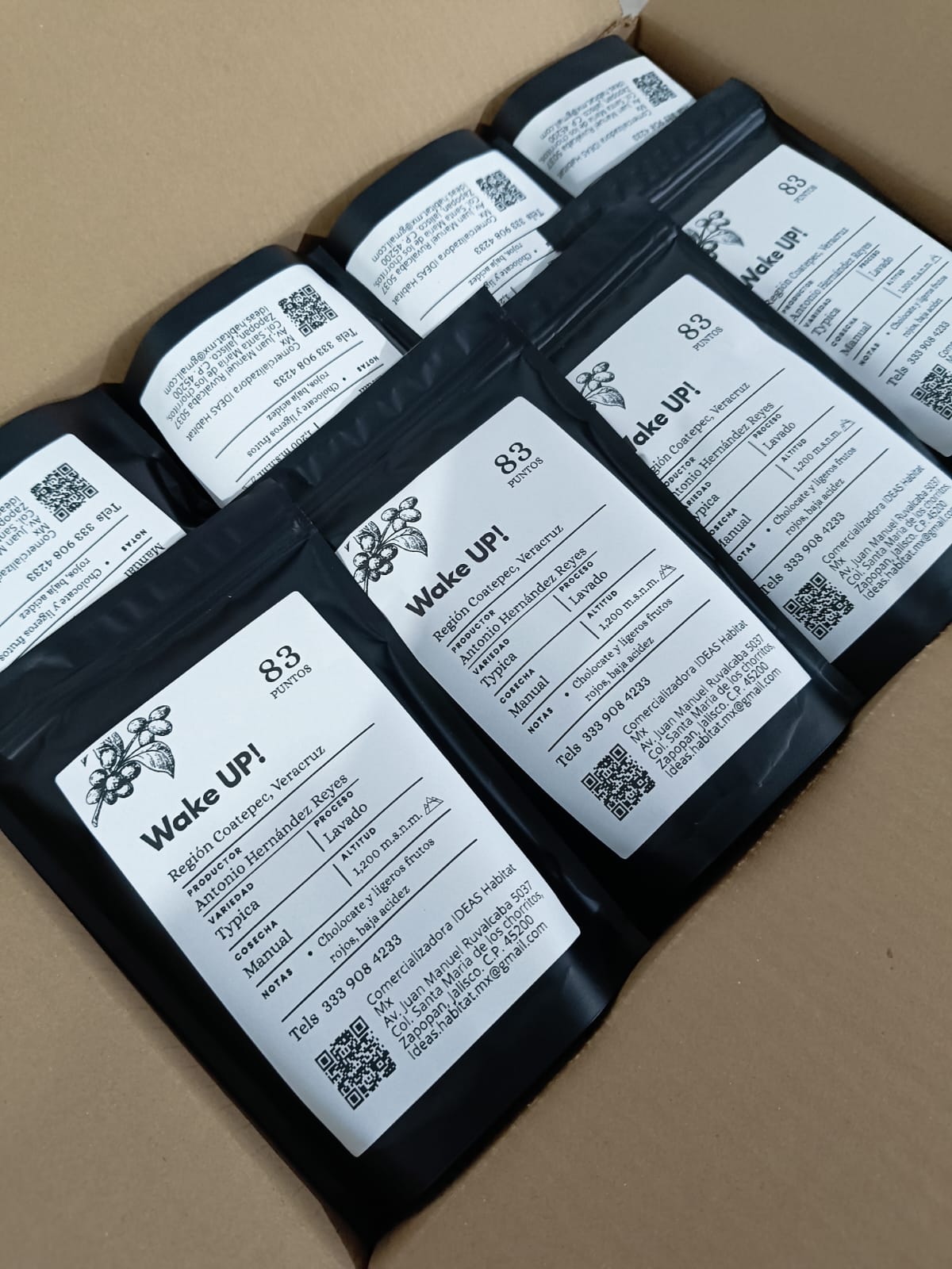 ✨ Con bolsa impresa a color o etiqueta en blanco y negro con tu logo, recibirás tu café en casa listo para vender.